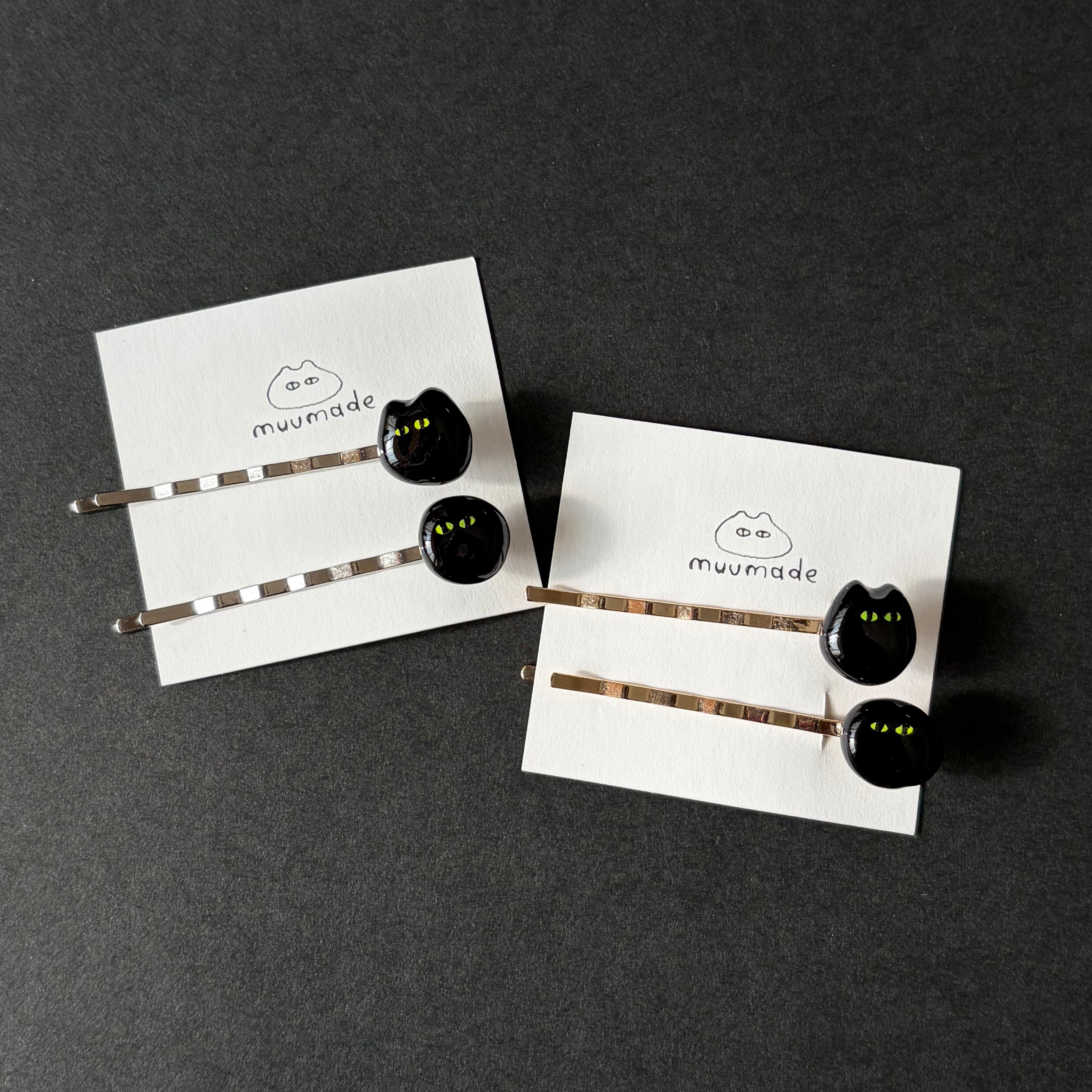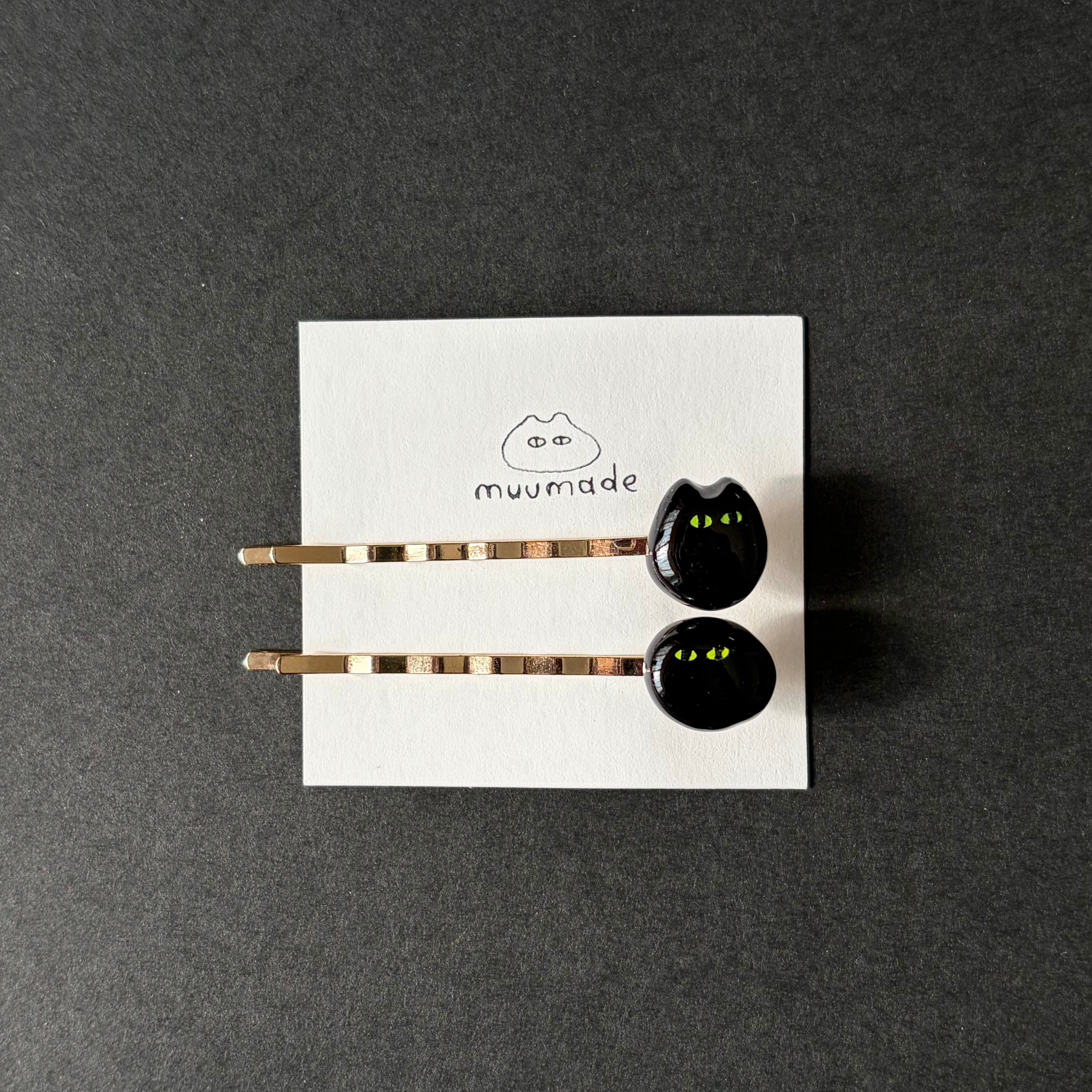 あやしいねこのヘアピン2本セットです。