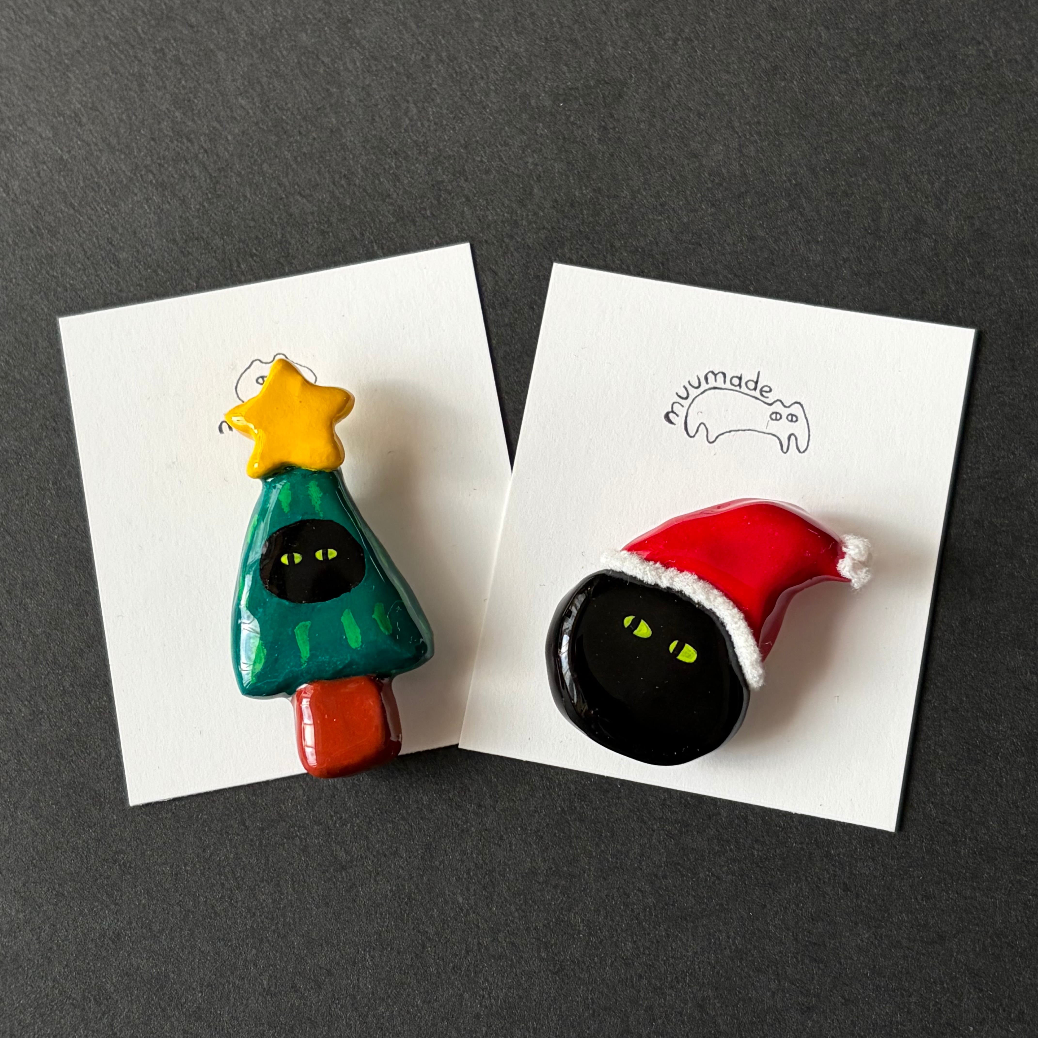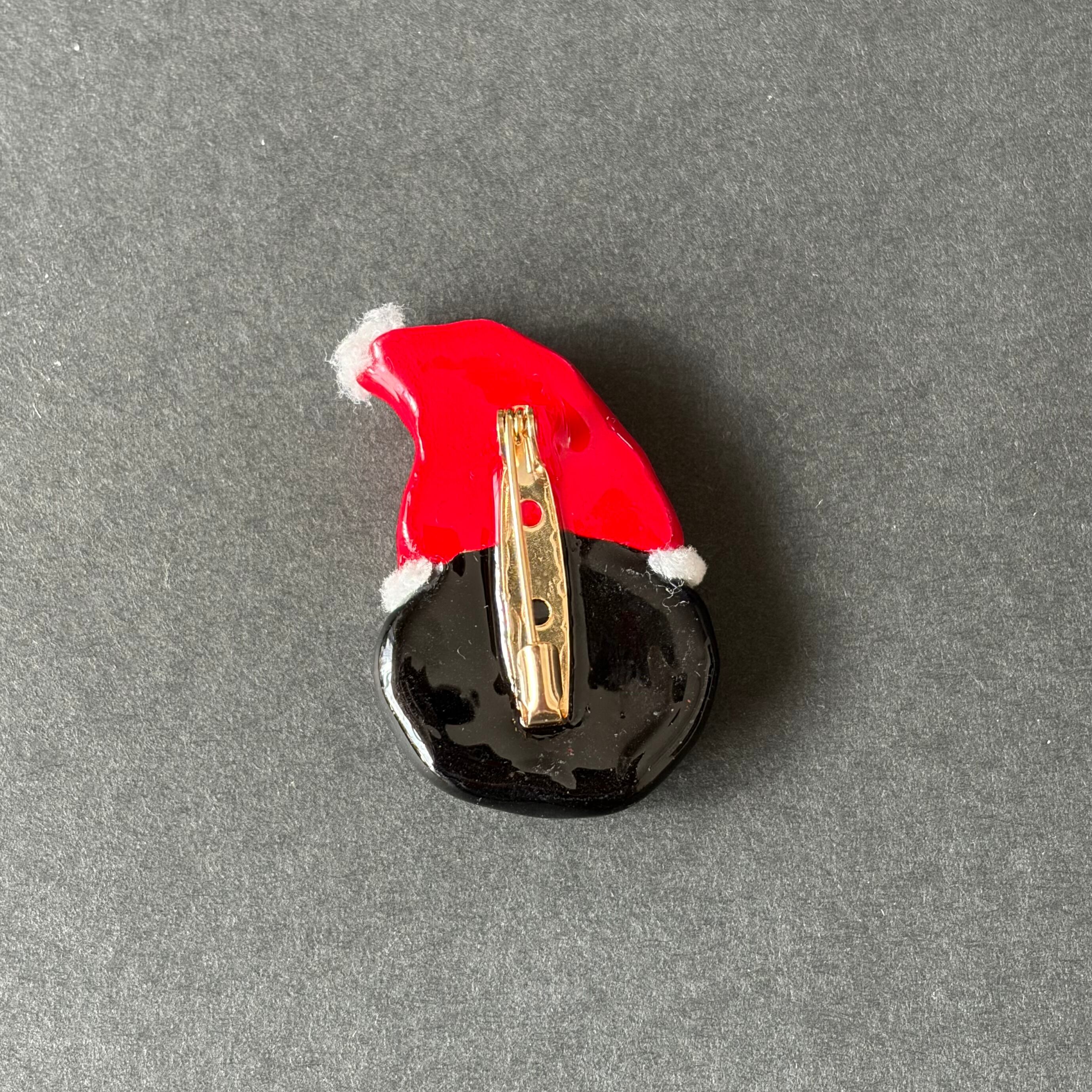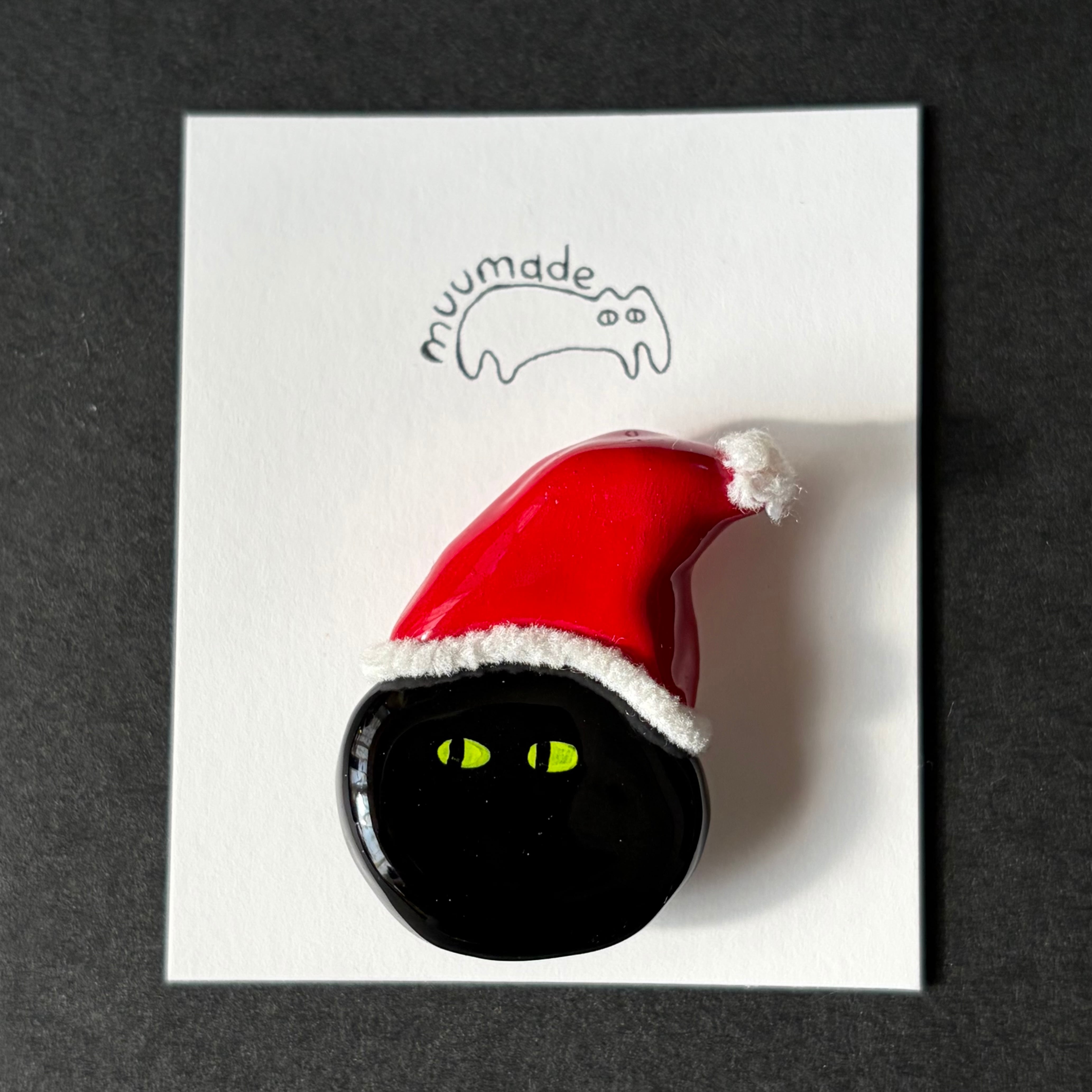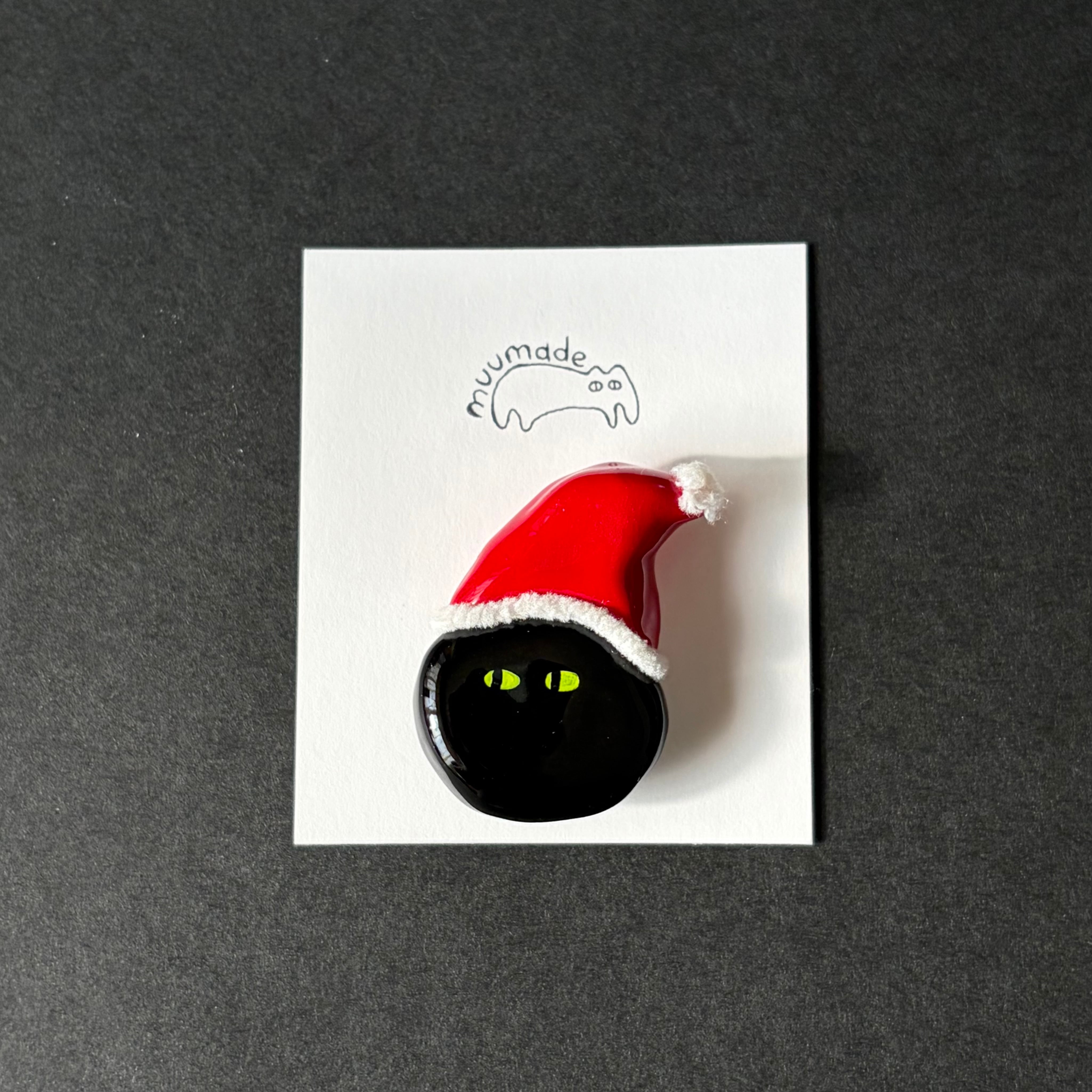 プレゼントをちゃんと届けてくれるのかあやしい目つきの、あやしいねこのブローチです。