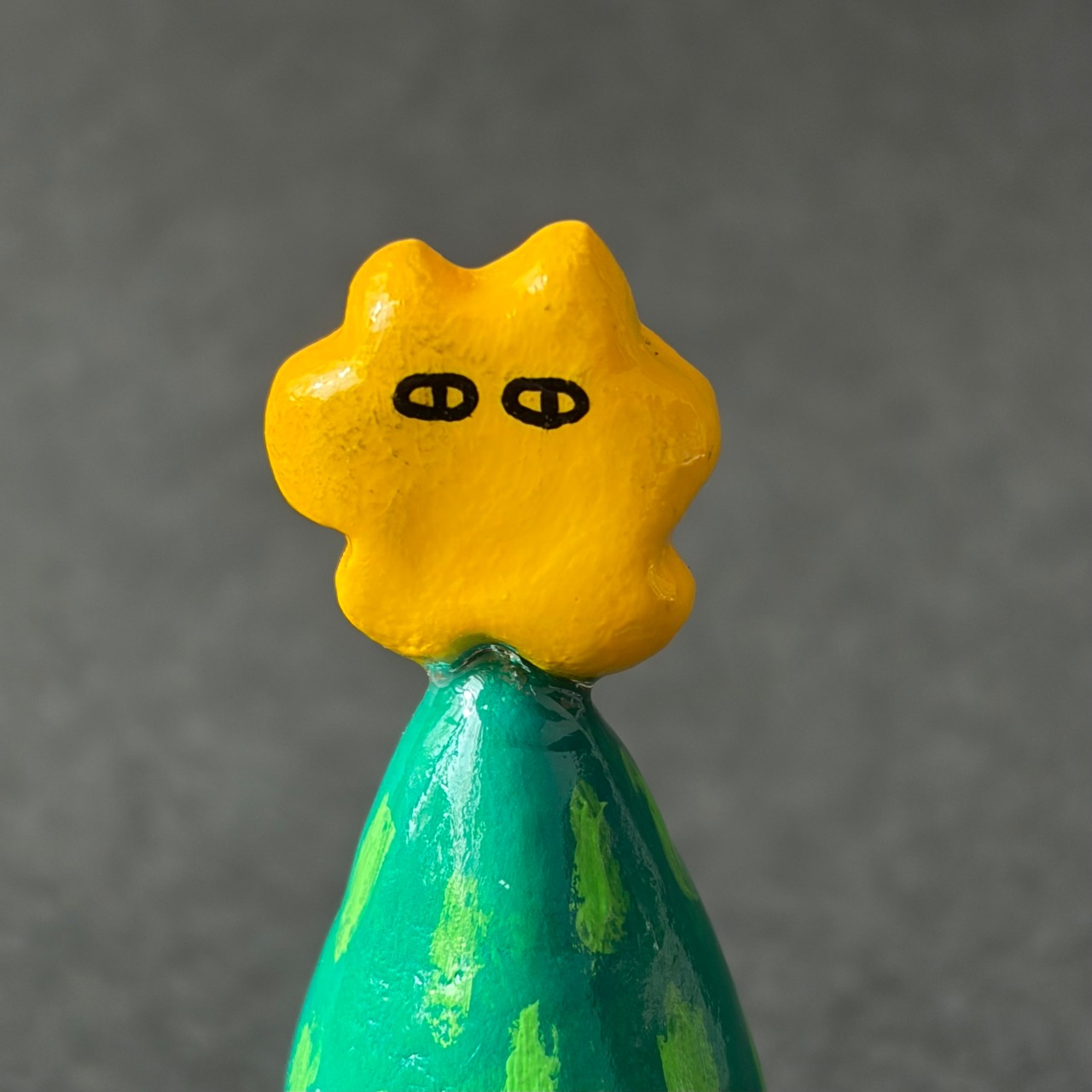 石塑粘土で形を作り着色したのち、ニスで仕上げてあります。