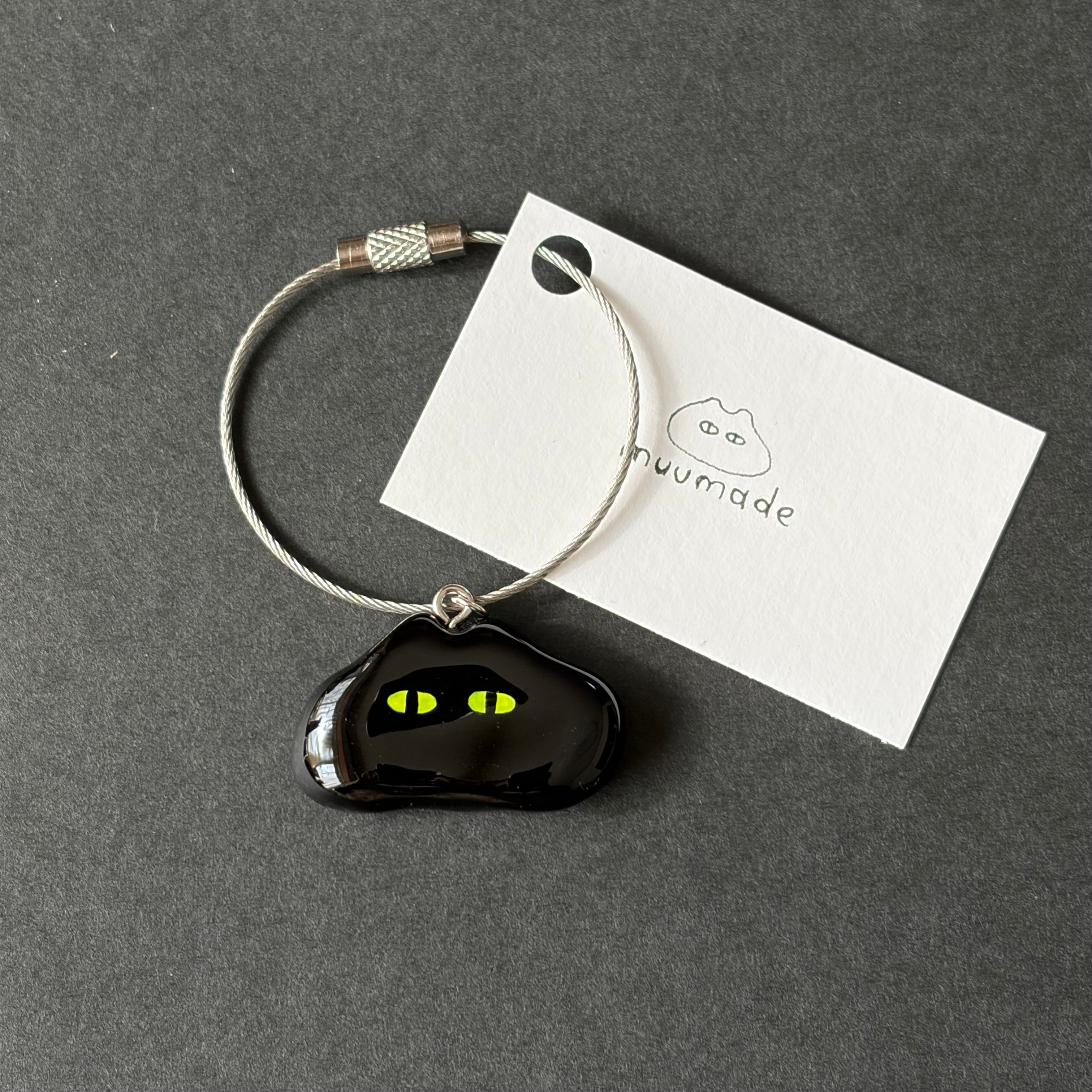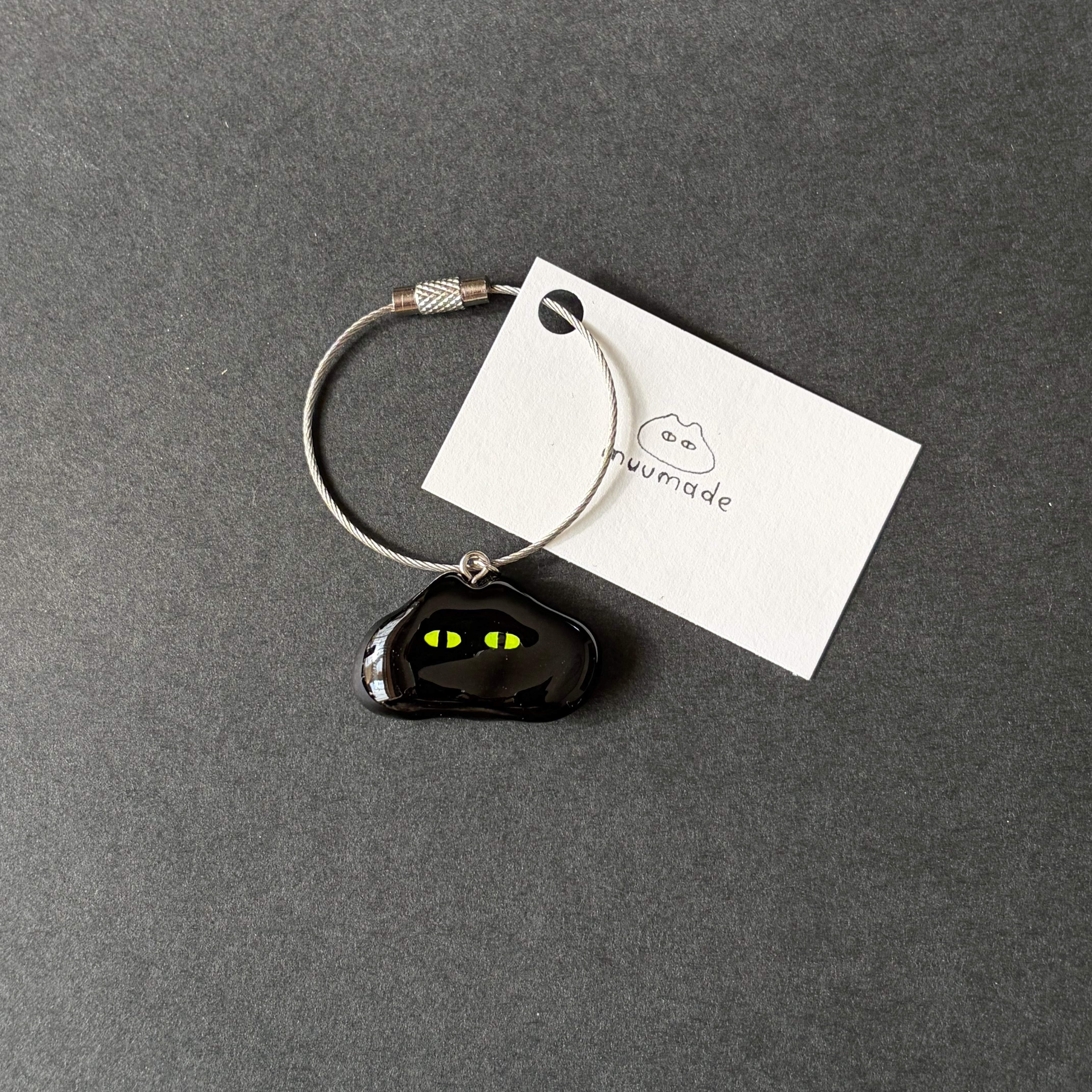 ツヤツヤなあやしいねこのキーリングです。