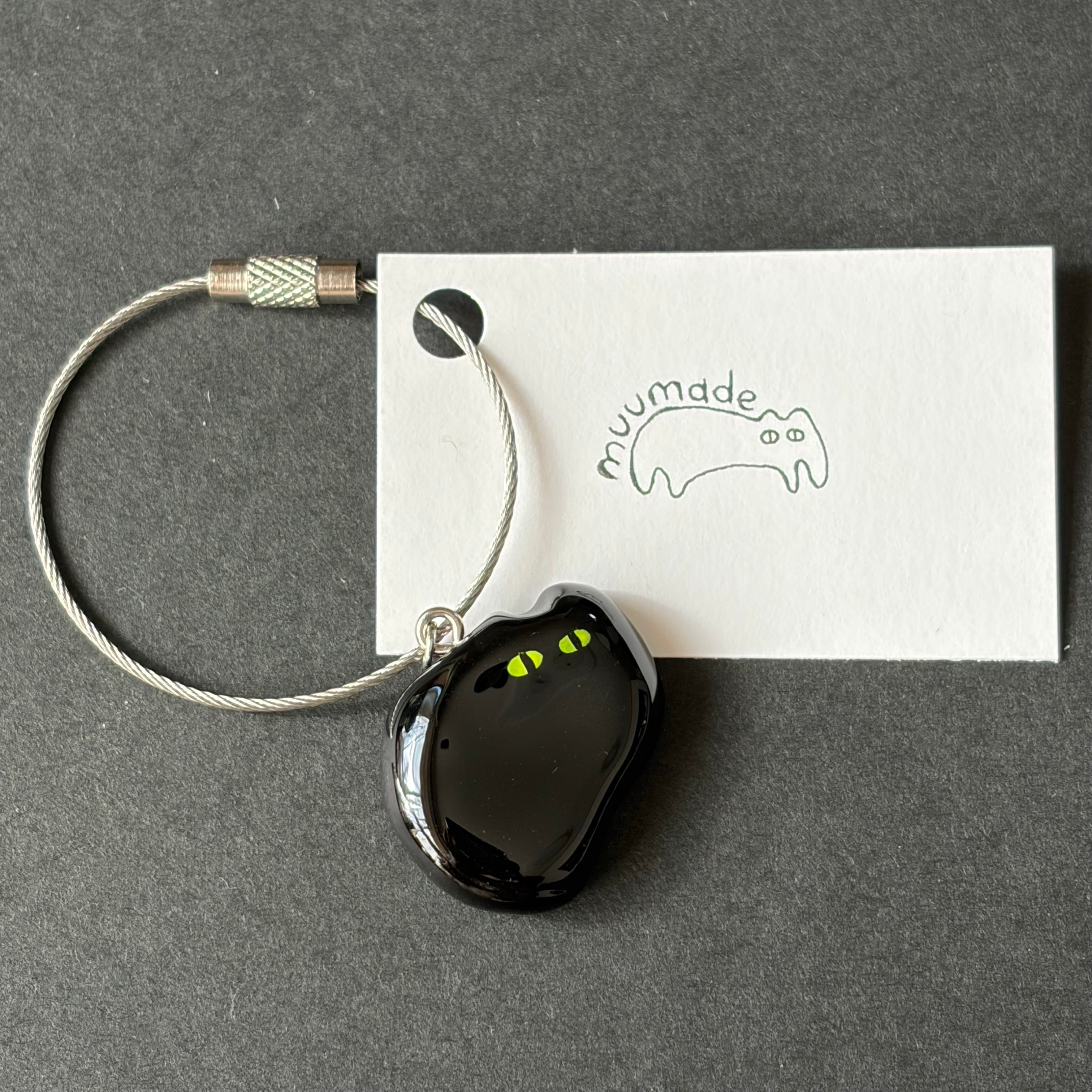 ツヤツヤなあやしいねこのキーリングです。