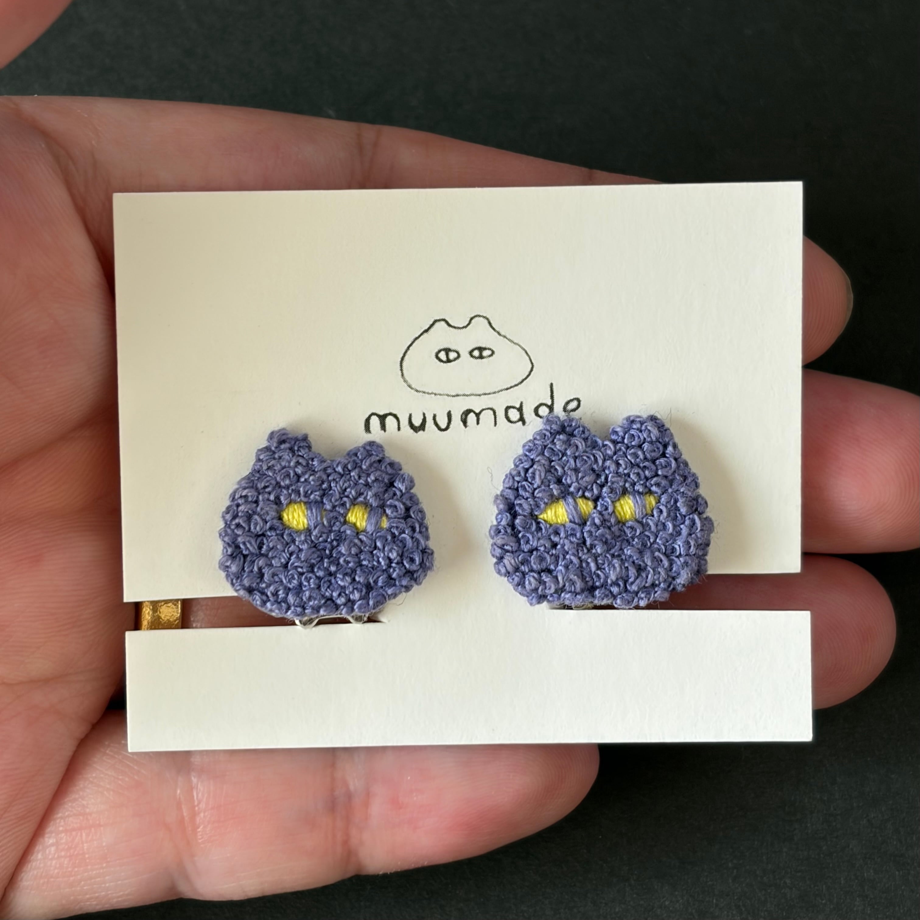 もじゃもじゃなあやしいバグねこのイヤリングです。