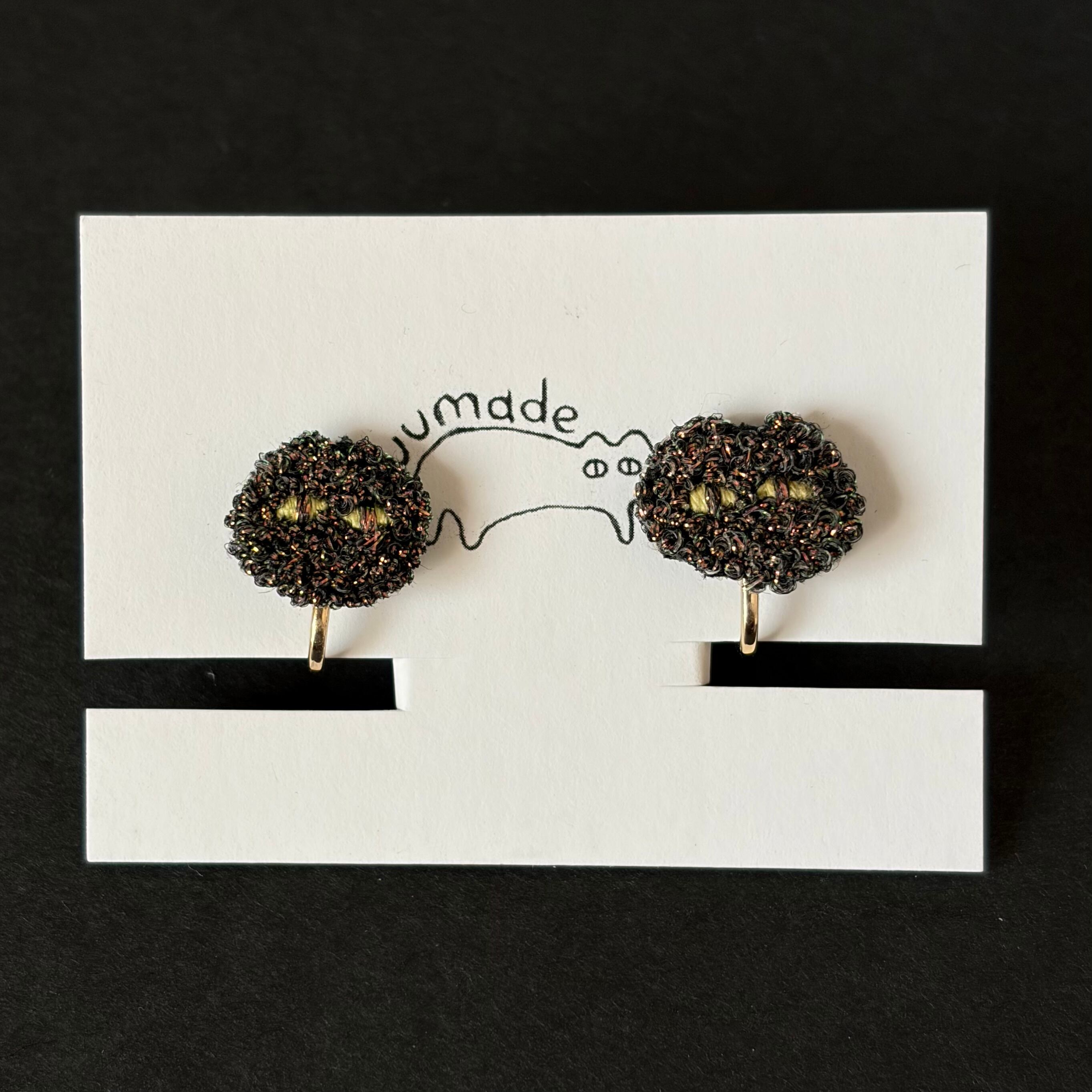 もじゃもじゃなあやしいラメねこのイヤリングです。