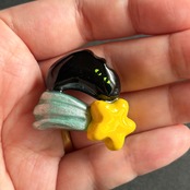 流れ星に乗ってどこまでも行ってしまいそうな、あやしいねこのブローチです。