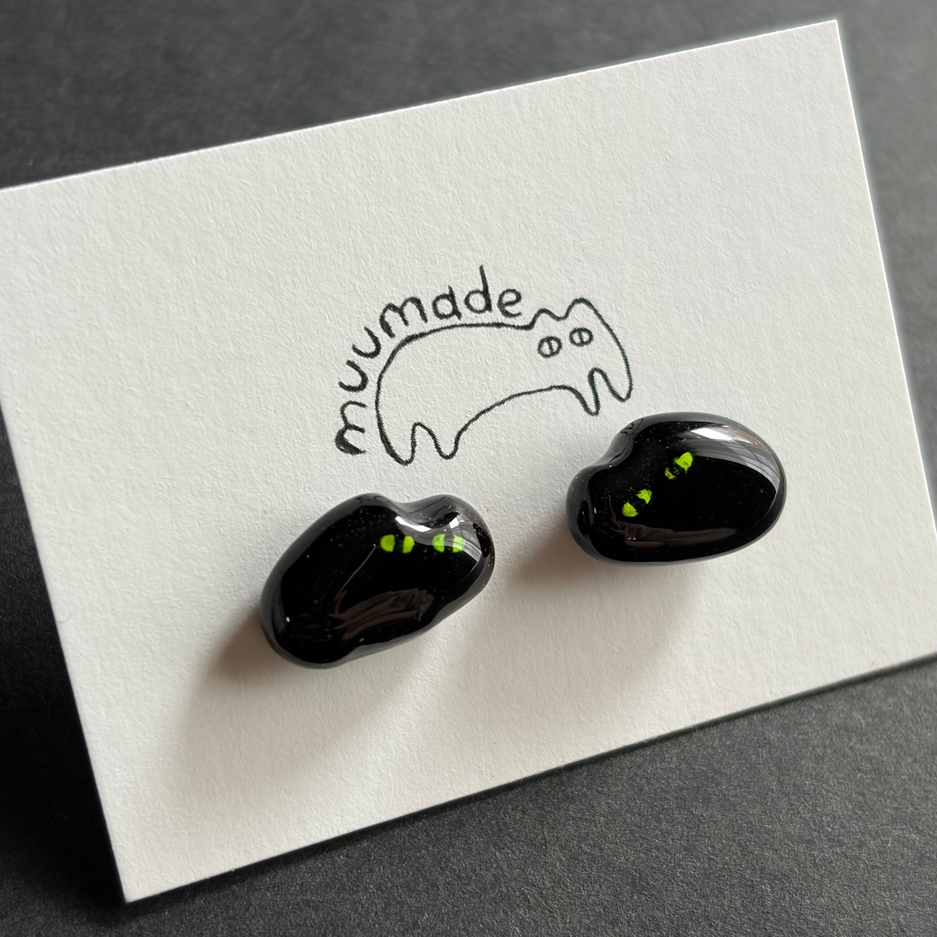 ツヤツヤなあやしいねこのピアスです。