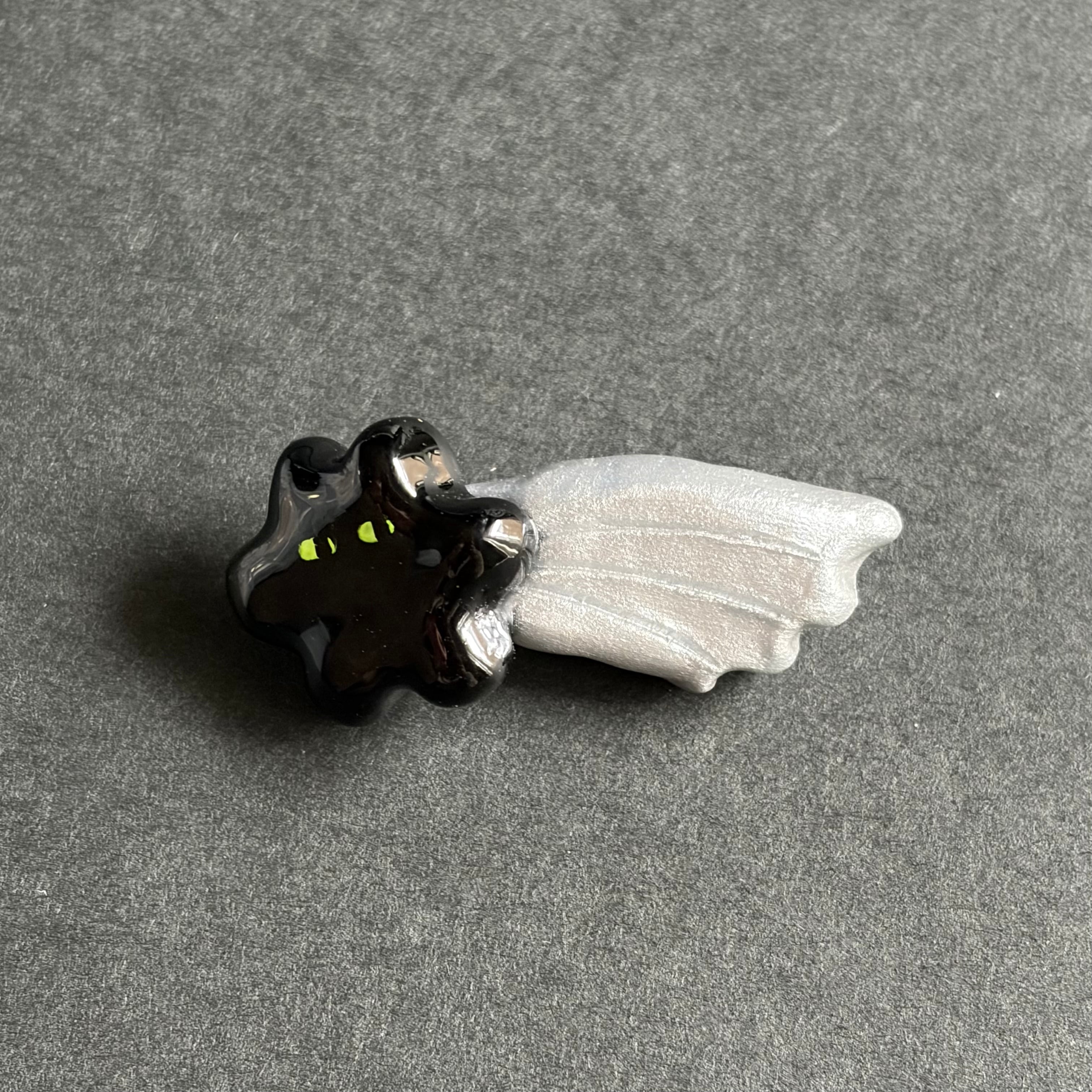 流れ星になってしまい、どこまでも行ってしまいそうな、あやしいねこのブローチです。
