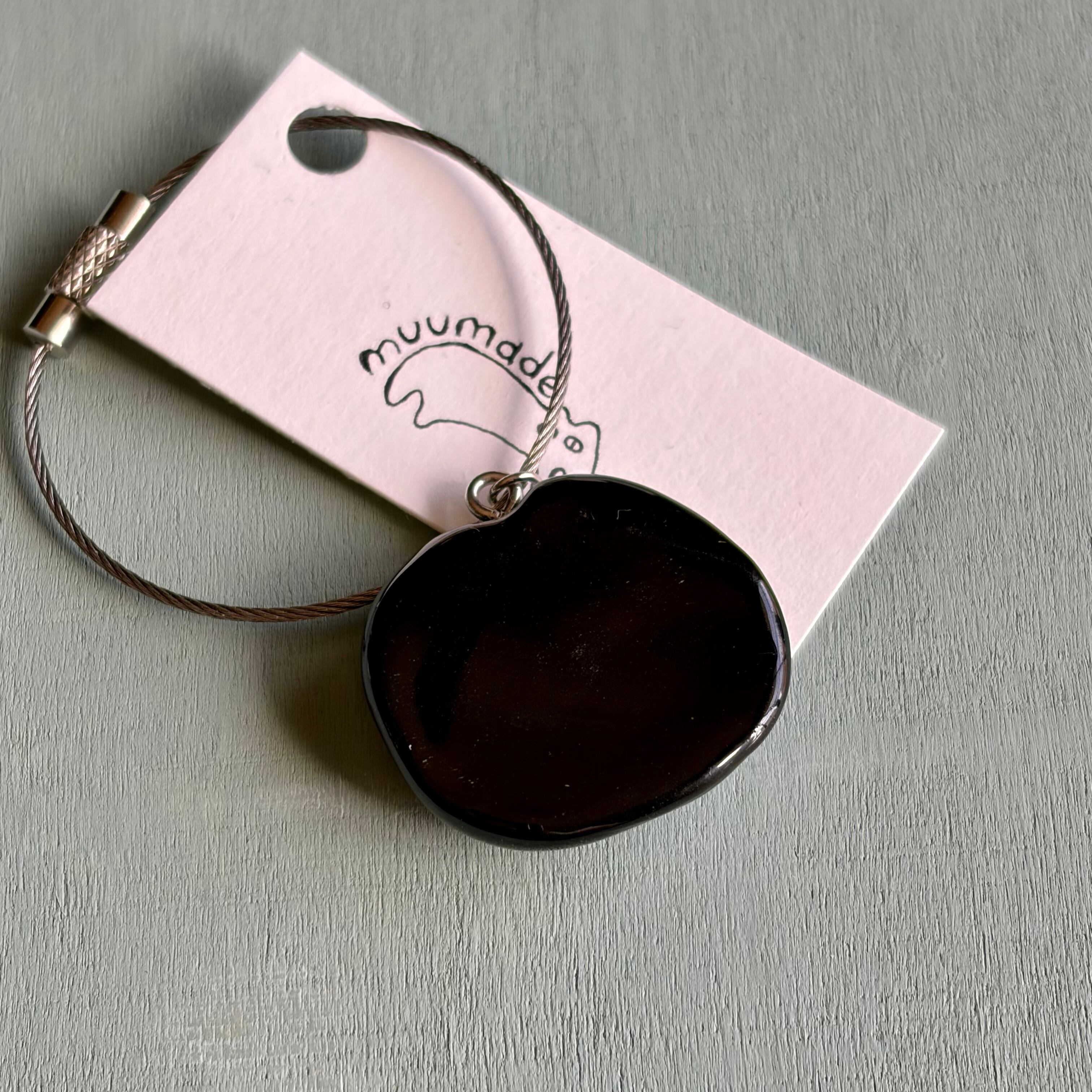 なにかをチラ見していそうなあやしいねこキーリングです。