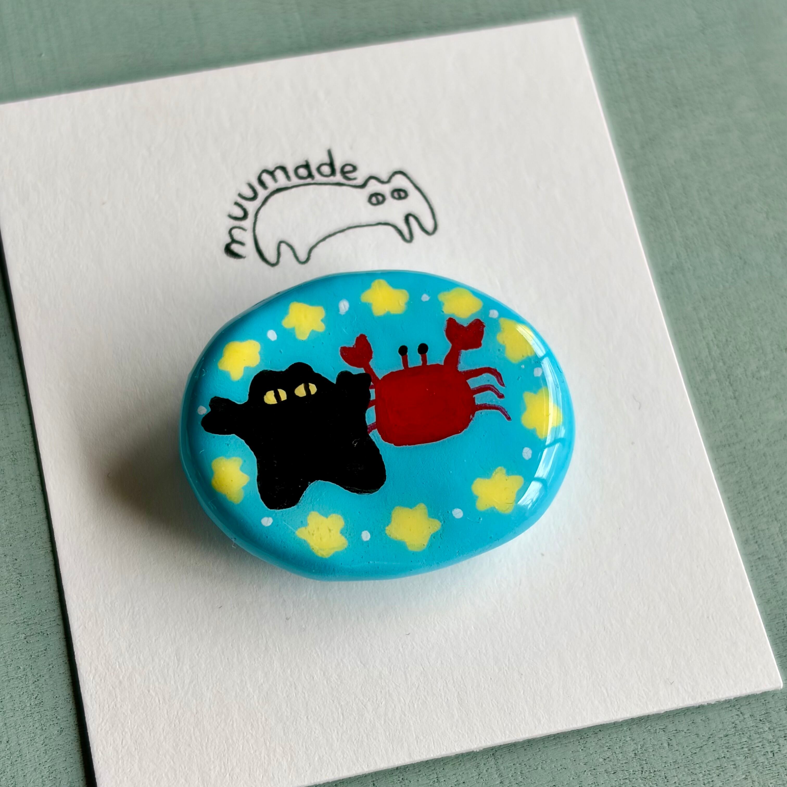石塑粘土で形を作り、手描きでイラストを描いています。